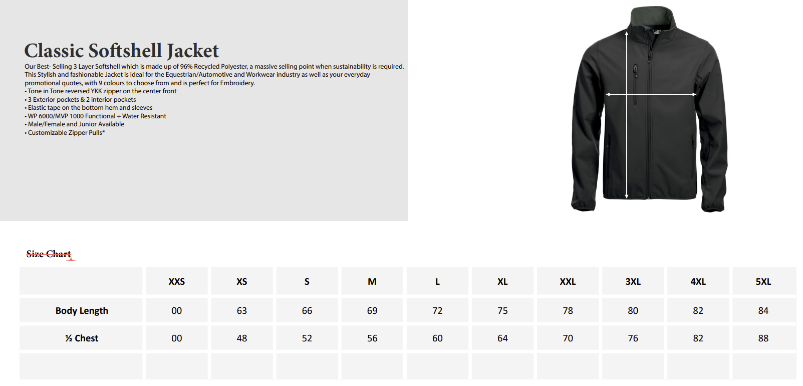 Het Classic Softshell Jacket is een hoogwaardige 3-laagse softshell jas, gemaakt van gerecycled polyester. De jas is voorzien van een ton-sur-ton omgekeerde rits aan de voorzijde en biedt voldoende opbergruimte dankzij twee zijzakken, een borstzak met rits en twee praktische binnenzakken. De elastische afwerking aan de boord en mouwen zorgt voor een comfortabele en aansluitende pasvorm, ideaal voor dagelijks gebruik en outdoor activiteiten.