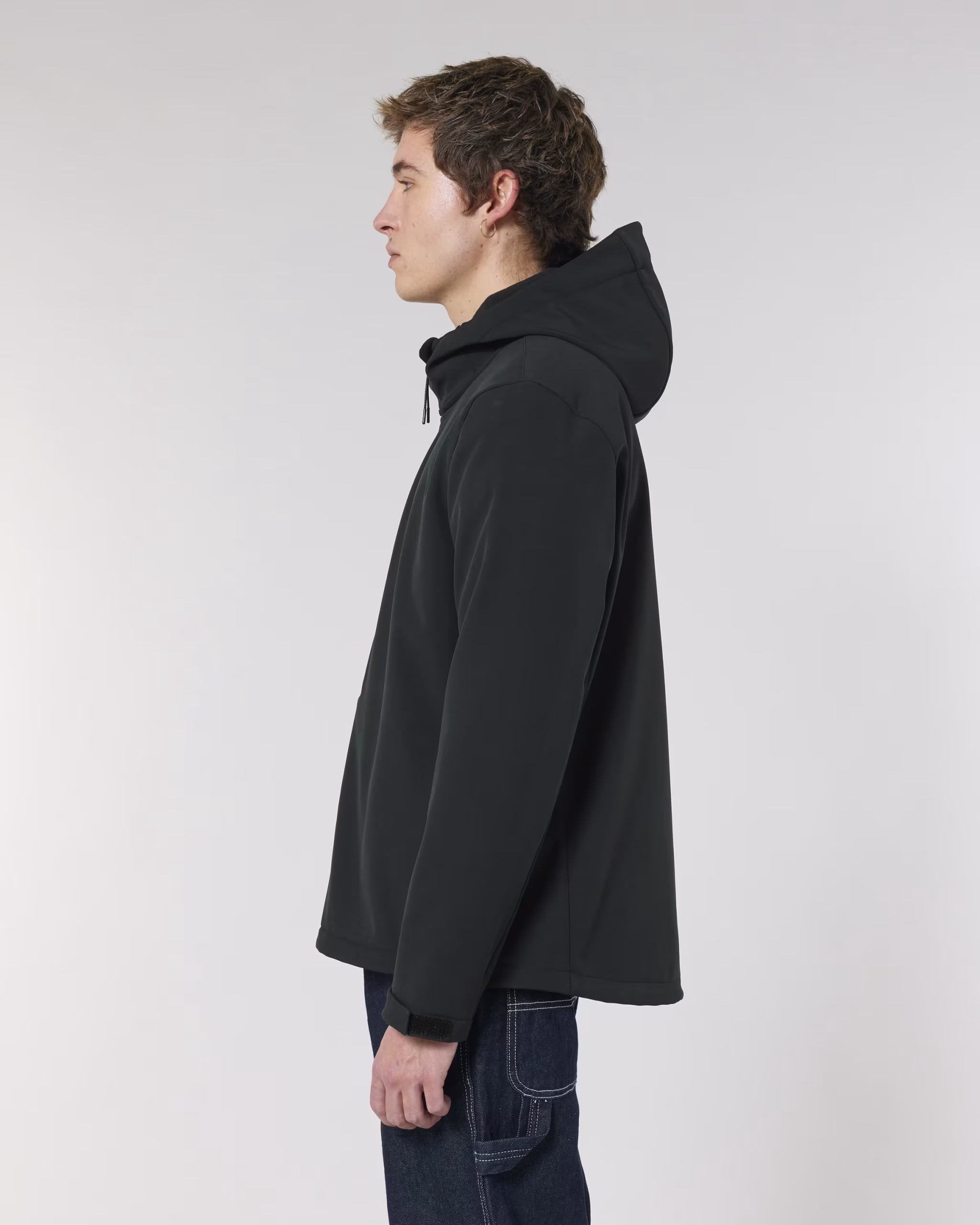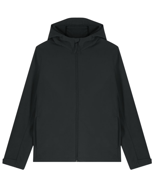 Deze technische 3-laags softshell jas met opstaande kraag en capuchon uit panelen biedt optimale bescherming bij wisselende weersomstandigheden. De bi-stretch stof zorgt voor een comfortabele pasvorm en blijvend vormbehoud. Dankzij het gerecyclede TPU-membraan is de jas winddicht, waterafstotend tot 10.000 mm en ademend tot 3.000 g/m²/24u. De fleecevoering met anti-pilling afwerking verhoogt het draagcomfort, terwijl de verstelbare capuchon, zoom en mouwopeningen zorgen voor een perfecte aansluiting. Functionele ritszakken met reflecterende trekkers maken het ontwerp compleet.
