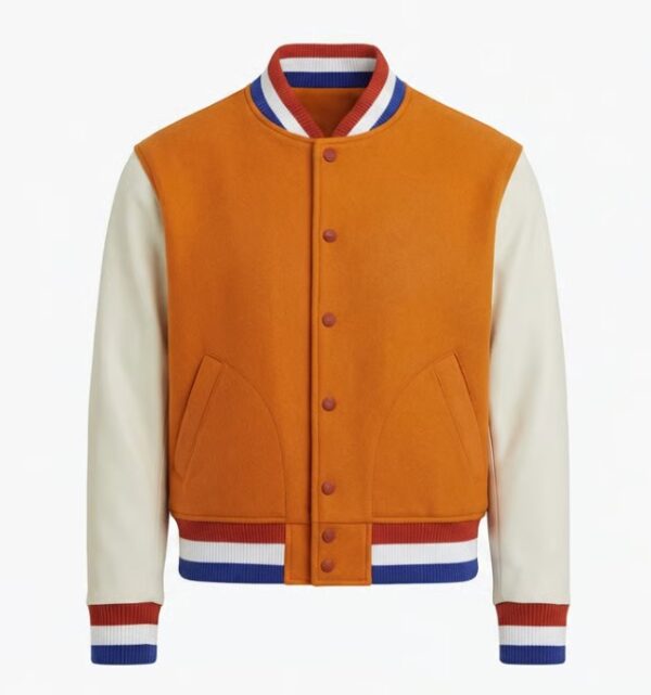 Klaar om het WK in stijl te beleven? Met deze opvallende oranje varsity jacket laat je meteen zien voor welk team je juicht. De jas heeft een sportieve college-look met een krachtige oranje body en contrasterende mouwen. De geribde boorden met rood-wit-blauwe strepen geven de jas een herkenbare, Nederlandse touch, perfect voor supporters, events en fanacties tijdens het WK. De jas sluit met drukknopen en heeft handige steekzakken aan de voorkant. Dankzij de comfortabele pasvorm draag je hem moeiteloos tijdens wedstrijden, evenementen of gewoon als sportieve casual jas. Extra leuk: de jas is ook te personaliseren met een logo, tekst of ontwerp op de voor- of achterkant. Ideaal voor bedrijven, teams of supportersgroepen die tijdens het WK samen willen opvallen.