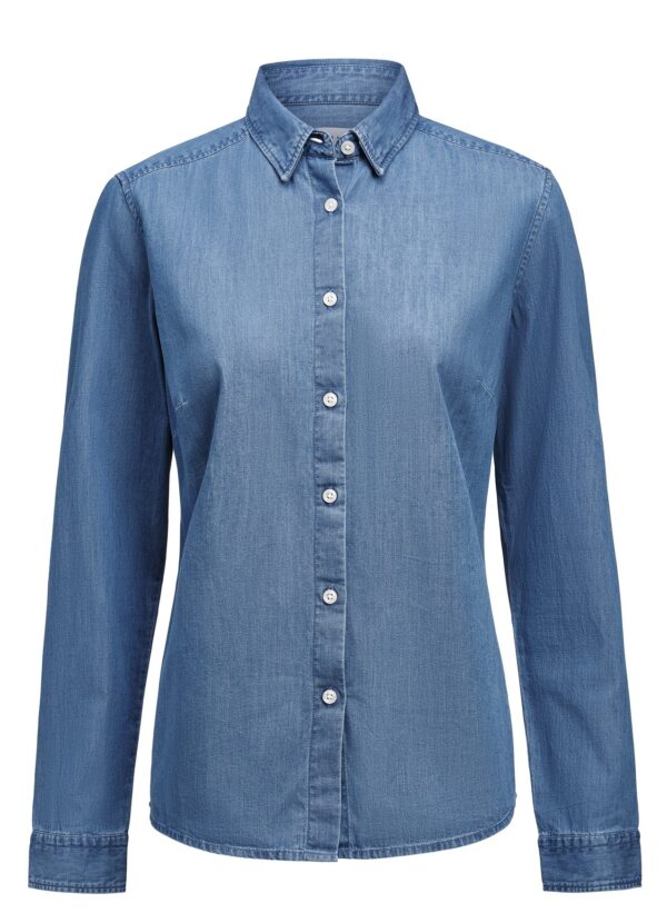 Het Sayville overhemd heeft een stijlvolle denim look en is gemaakt van 100% biologisch katoen. Het shirt is voorzien van een verborgen button-down kraag en parelmoerkleurige knopen, wat zorgt voor een klassieke denim uitstraling. Dankzij de Contemporary Fit heeft het overhemd een comfortabele, moderne pasvorm.