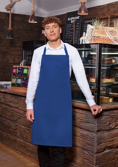 Dit schort is gemaakt van 65% polyester en 35% katoen en combineert duurzaamheid met draagcomfort. Met een royale afmeting van 75 x 100 cm (breedte x lengte) biedt het optimale bescherming tijdens het werk. De doorlopende band is vervaardigd uit dezelfde schortstof en zorgt voor een stevige en uniforme uitstraling. Dankzij de versterkte spanningspunten is het schort extra duurzaam en bestand tegen intensief gebruik. De nekband heeft een lengte van circa 60 cm en het schort is wasbaar tot 60°C, waardoor het perfect geschikt is voor dagelijks professioneel gebruik.