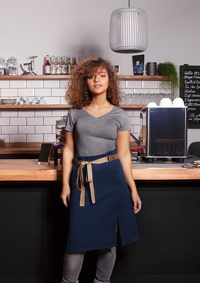 De leren heupgordel en banden in contrasterende kleur geven het ontwerp een stoere, stijlvolle look. Dankzij de praktische drukknopen zijn alle banden eenvoudig te verwijderen, wat het onderhoud extra gemakkelijk maakt. Aan de zijkant bevinden zich twee gestikte zakken van 18 x 20 cm, ideaal voor het opbergen van benodigdheden. De slit zorgt bovendien voor extra bewegingsvrijheid. De sloof is kleurvast, slijtvast en wasbaar tot 60°C, waardoor hij perfect geschikt is voor intensief en professioneel gebruik.