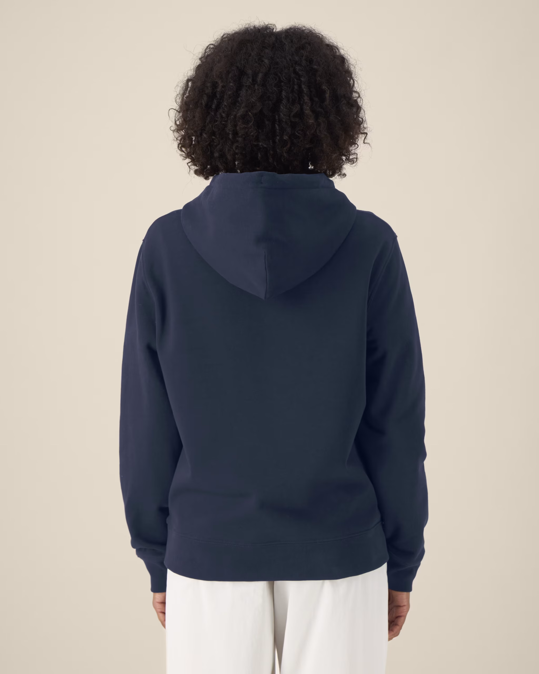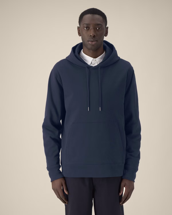 Moderne hoodie met dubbelgelaagde capuchon en rond ton sur ton aantrekkoord met metalen uiteinden en geborduurde oogjes. Voorzien van visgraat nektape en halvemaan in de nek voor extra comfort en een nette afwerking. De ingezette mouwen en kangoeroezak zorgen voor een tijdloze uitstraling. Afgewerkt met 1×1 ribboorden en dubbel stiksel langs mouwuiteinden en zoom voor extra stevigheid.