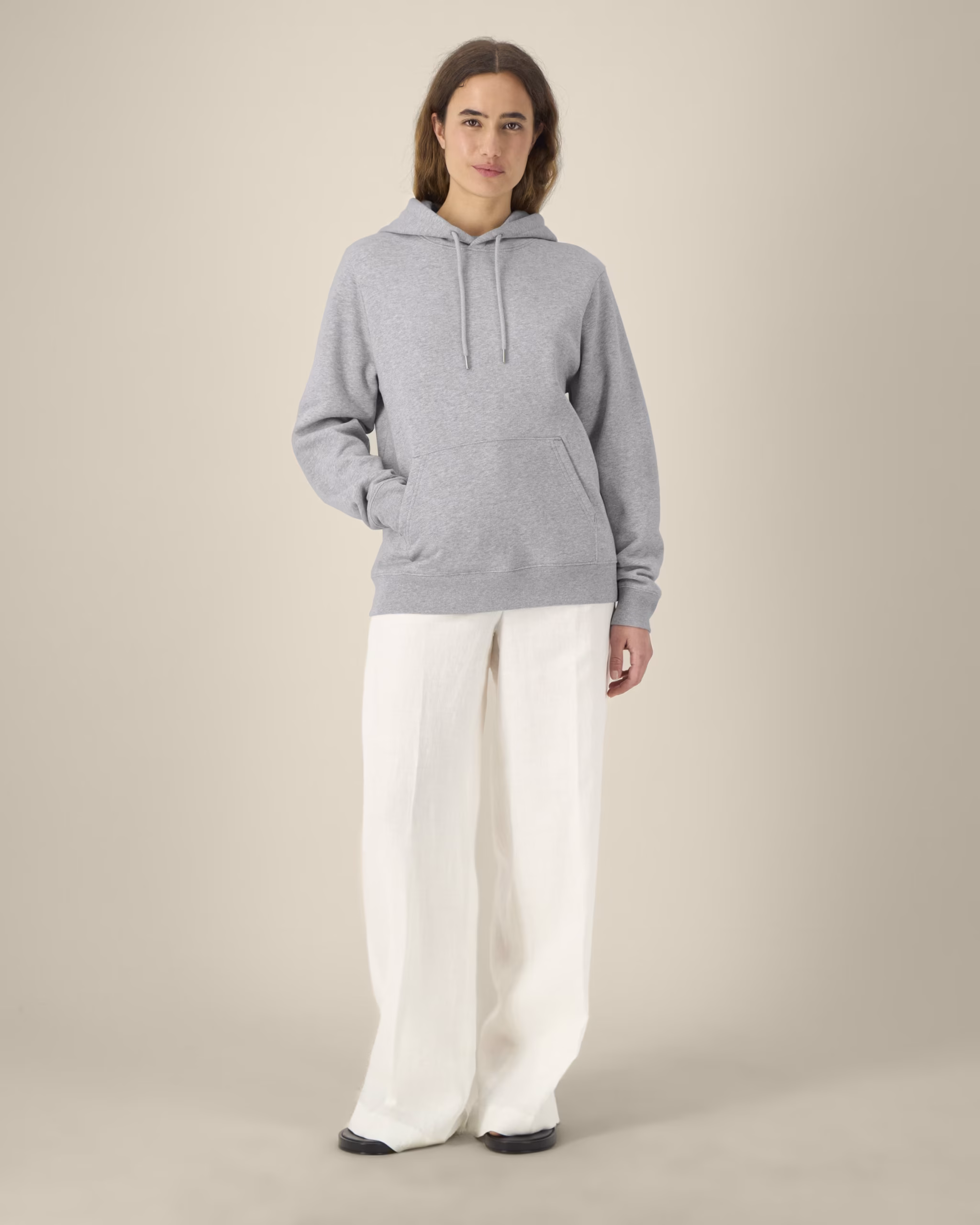 Comfortabele hoodie met dubbel gevoerde capuchon van dezelfde stof, een rond trekkoord in bijpassende kleur met metalen uiteinden van deels gerecycled metaal en geborduurde oogjes. Voorzien van ingezette mouwen, een kangoeroezak en afgewerkt met 1×1 ribboorden, visgraat nekband en duurzame twin-needle stiknaden.