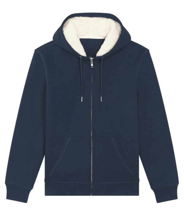 Deze Full Zip is volledig gevoerd met zachte, gerecyclede sherpa voor optimaal comfort en warmte. De dubbelgelaagde capuchon heeft een rond ton-sur-ton aantrekkoord met metalen uiteinden en metalen oogjes, terwijl nektape van visgraatband en een halve maan van eigen stof in de nek extra draagcomfort bieden. De bedekte metalen rits middenvoor, ingezette mouwen, interne borstzak, kangoeroezak en 1×1-rib aan mouwuiteinden en zoom maken het functioneel en stijlvol. Dubbel stiksel langs armsgaten, mouwuiteinden en zoom, samen met een blinde rits in de zoom voor eenvoudige decoratie, garandeert een duurzame en nette afwerking.