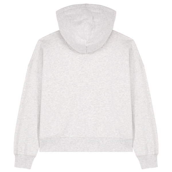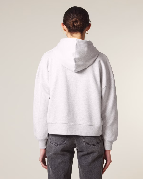 Comfortabel vest met rits en ingezette mouwen, verlaagde schouders en een dubbel gevoerde capuchon van dezelfde stof. Voorzien van een platte trekkoord in bijpassende kleur, geborduurde oogjes en een afgedekte metalen ritssluiting aan de voorzijde. Afgewerkt met 1×1 ribboorden, luxe grosgrain nekband, een halvemaan in dezelfde stof en duurzame dubbele stiknaden voor een hoogwaardige uitstraling.
