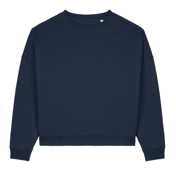 Comfortabele sweater met ingezette mouwen, 1×1 ribboorden aan hals, manchetten en zoom, een visgraat nekband en halvemaan van dezelfde stof, afgewerkt met doorgestikte zijnaden en duurzame twin-needle stiknaden.