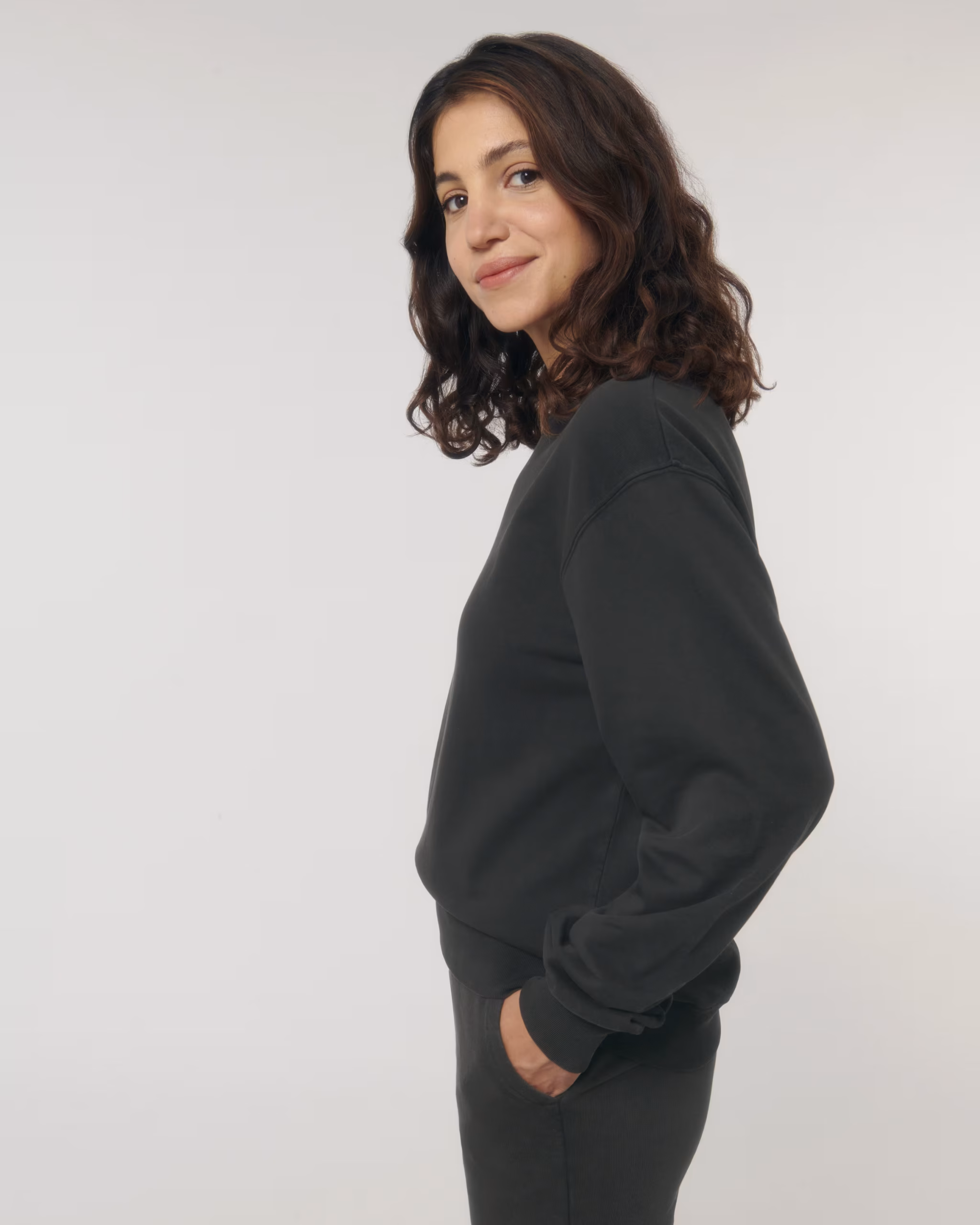 Unieke garment dyed crewneck met 1×1-rib aan hals, mouwen en zoom voor een comfortabele pasvorm. De nektape van single jersey en halve maan van eigen stof in de nek zorgen voor extra draagcomfort. Met ingezette mouwen, enkelvoudige stiksels langs de hals en dubbele stiksels langs armsgaten, mouwuiteinden en zoom is deze sweater stevig en duurzaam. De vervaagde naden creëren een authentieke washed look en door het garment dyed proces heeft elk stuk lichte kleurvariaties.