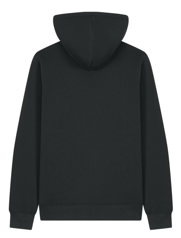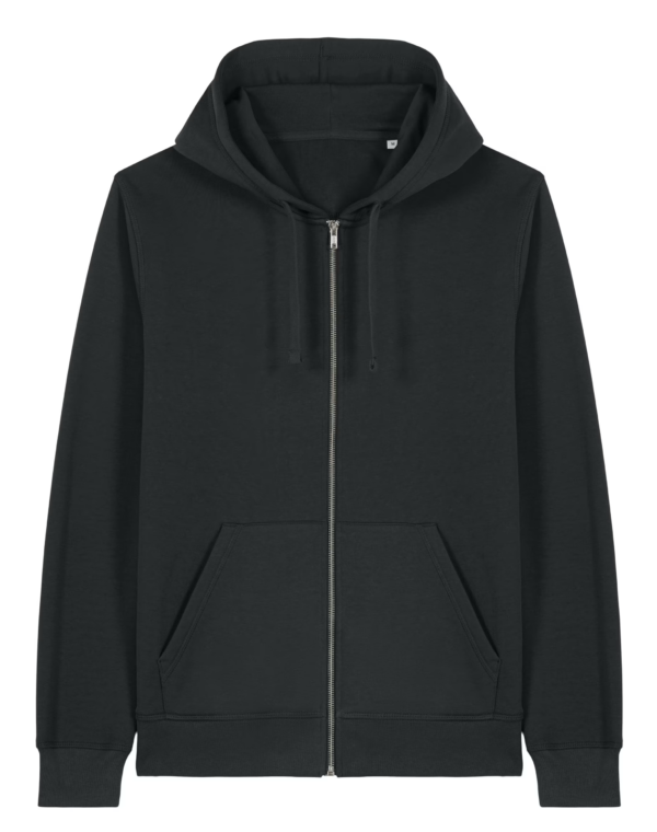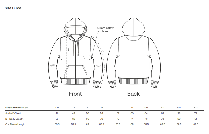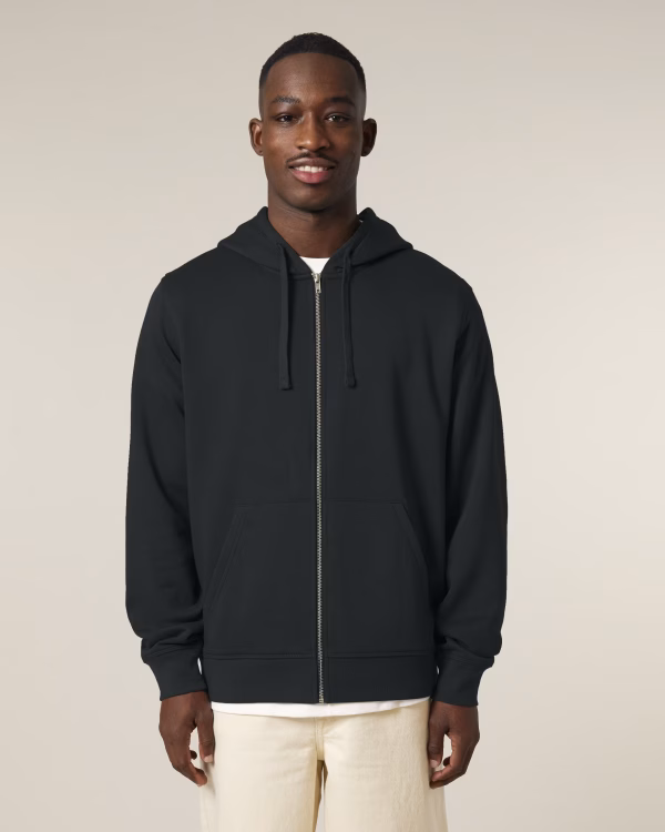 Deze full zip is uitgevoerd met een dubbelgelaagde capuchon van dezelfde stof en een plat ton-sur-ton aantrekkoord met geborduurde oogjes voor een nette afwerking. Langs de nek en de rits is een subtiele visgraatband verwerkt, terwijl de halvemaan in de nek extra comfort biedt. De zichtbare metalen ritssluiting middenvoor geeft een moderne touch. Ingezette mouwen en een praktische kangoeroezak maken het geheel compleet. De mouwuiteinden en zoom zijn afgewerkt met 1×1-rib, en overal is het kledingstuk drievoudig gestikt voor extra duurzaamheid.