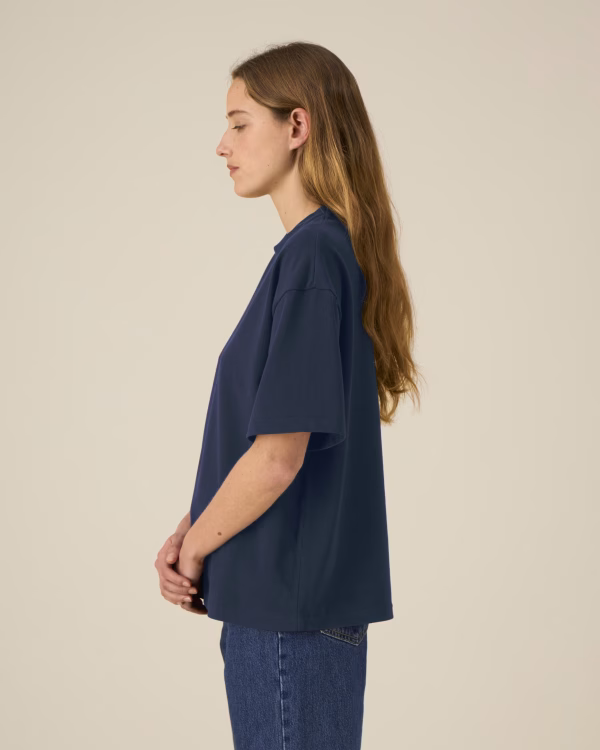 Dit shirt is afgewerkt met een 1×1-rib halsboord en een nektape van eigen stof. De ingezette mouwen en de blinde zoom aan mouwuiteinden en zoom zorgen voor een strakke, verzorgde afwerking.