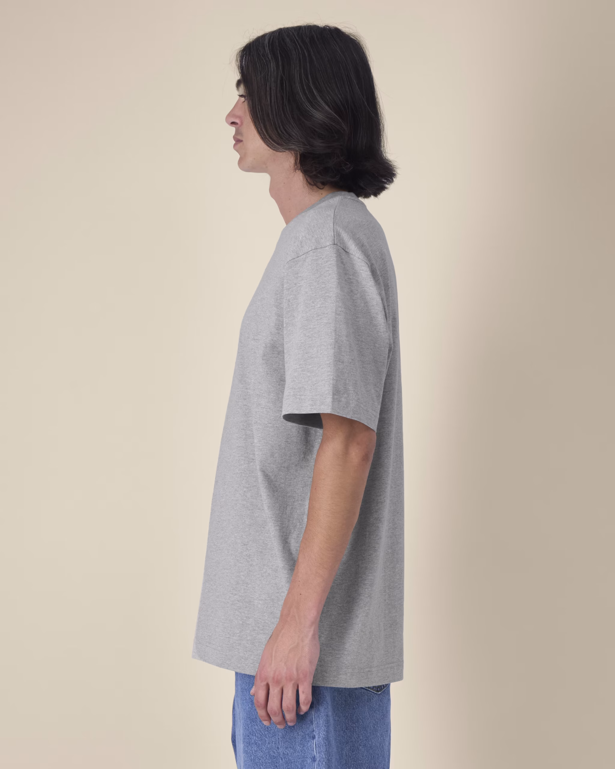 Dit shirt heeft een 1×1-rib halsboord en een nektape van eigen stof. De ingezette mouwen en het brede dubbele stiksel langs mouwuiteinden en zoom zorgen voor een stevige, moderne afwerking, terwijl de licht gestructureerde stof bijdraagt aan een verfijnde uitstraling.