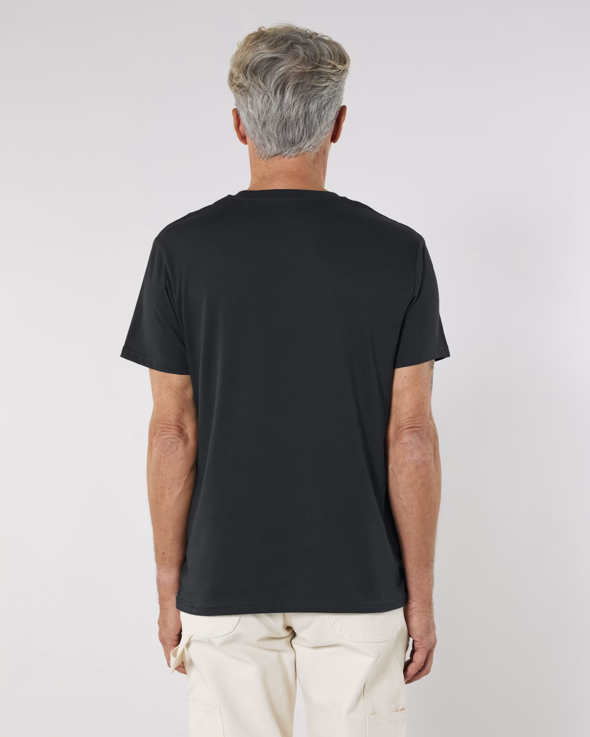 Unisex T-shirt met 1×1-rib halsboord, nektape van eigen stof en ingezette mouwen, rondgebreid voor een naadloze afwerking en voorzien van breed dubbel stiksel langs mouwuiteinden en zoom.
