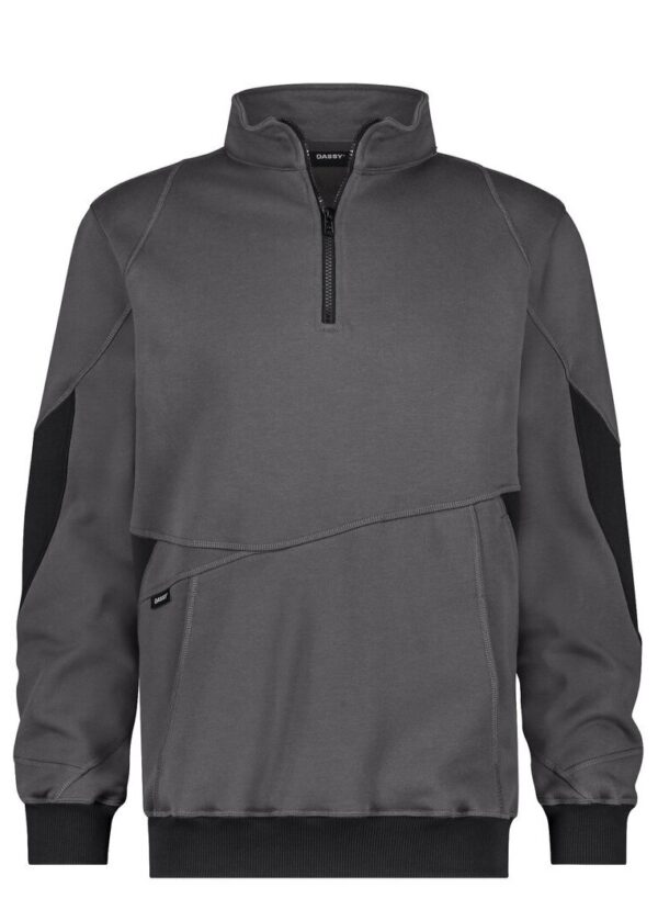 De DASSY® D-FX Flex Hyrax Next sweater combineert comfort, functionaliteit en duurzaamheid. Dankzij het gebruik van gerecycled polyester en slimme details zoals een korte rits, kangoeroezak en verborgen veiligheidszak is deze sweater ideaal voor dagelijks gebruik op het werk of in je vrije tijd.