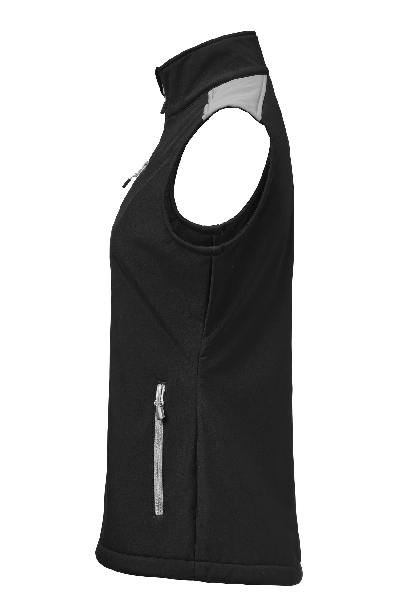 Bicolor softshell bodywarmer met contrasterende ritssluitingen aan de voorzijde en de zijzakken. Gemaakt van 100% gerecycled polyester. Voorzien van verstelbare trekkoorden aan de onderboord voor een optimale pasvorm. Inclusief praktische binnenzak. Afgewerkt met een uitscheurbaar neklabel en een afzonderlijk geweven maatlabel. Aan de binnenzijde van de linkerzijnaad bevindt zich een handig zakje voor het innaaien van een waschip.